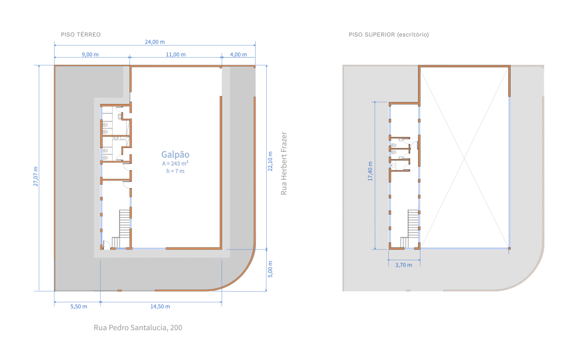 - Área do galpão (pé direito de 7 m): 243 m²